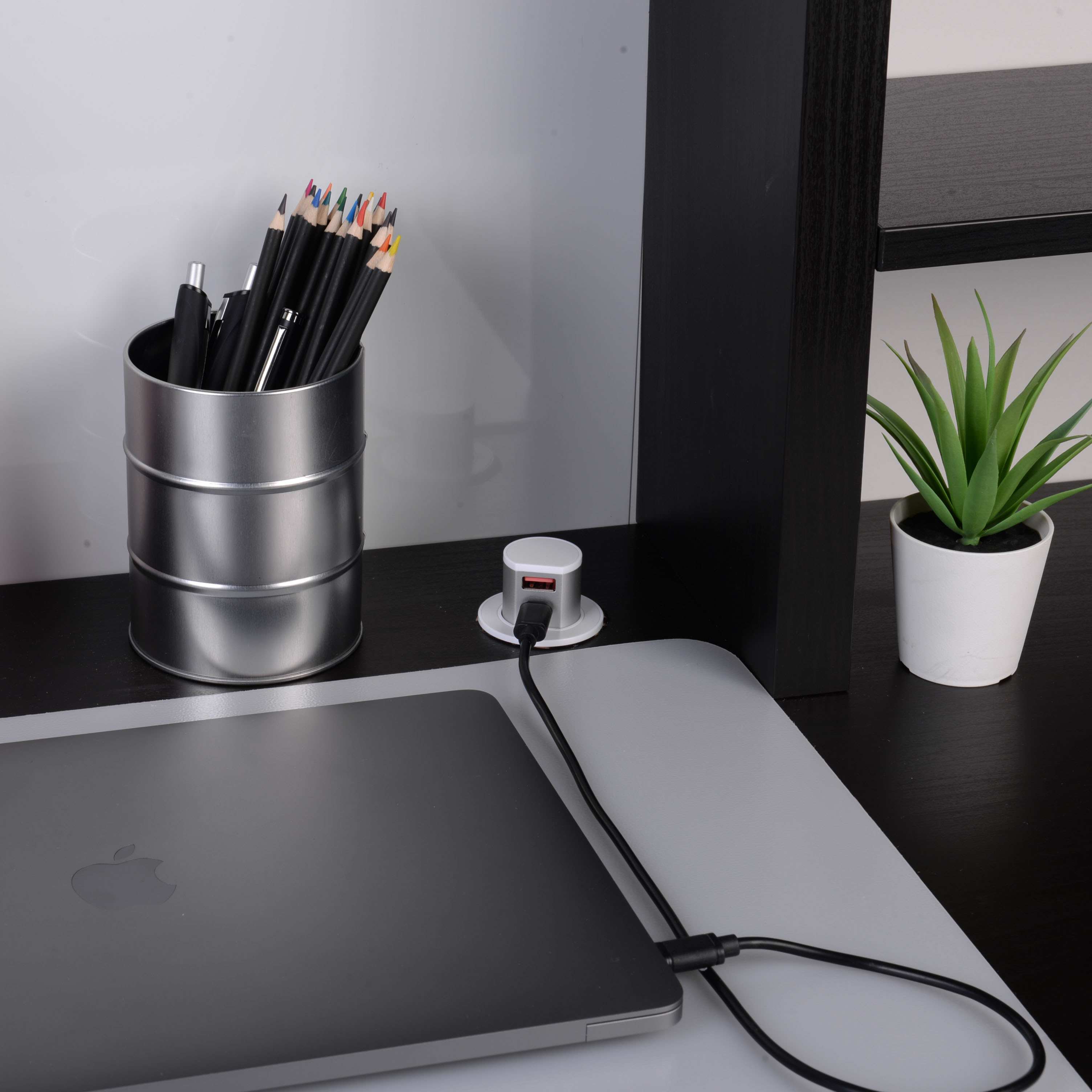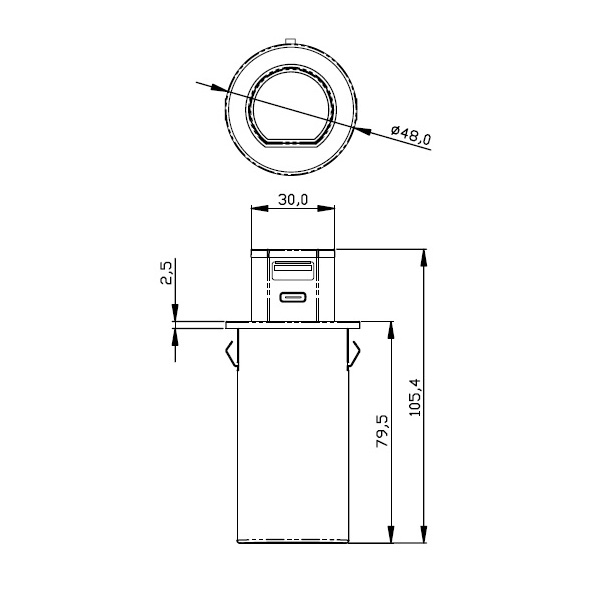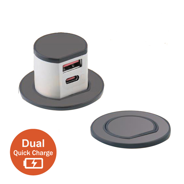 Mini Pop-Up Dual USB Quick Charger – Type – A & C (Max.30W) – Black Nickel
