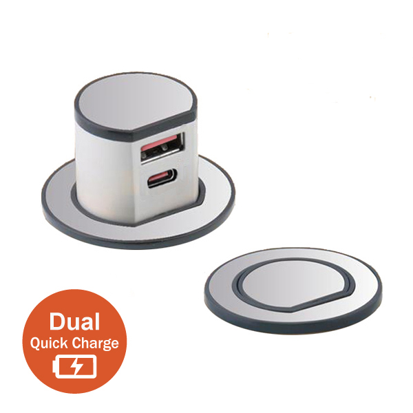 Mini Pop-Up Dual USB Quick Charger – Type – A & C (Max.30W) – Chrome