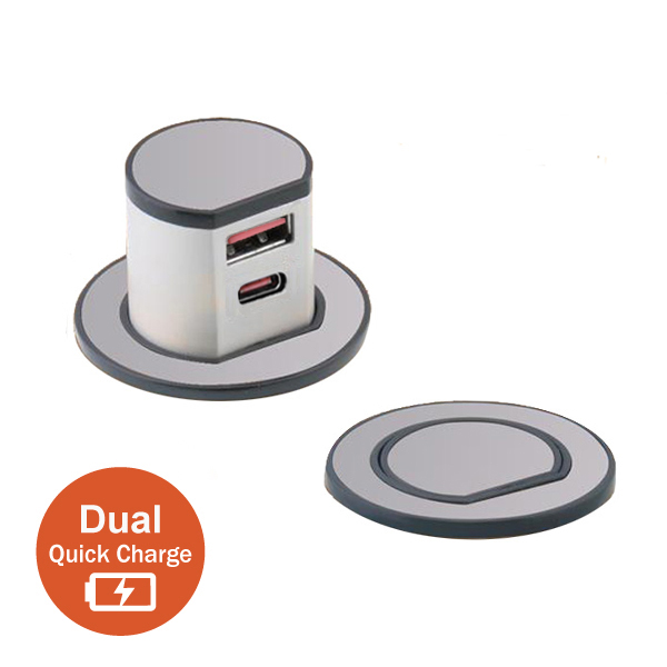 Mini Pop-Up Dual USB Quick Charger – Type – A & C (Max.30W) – Stainless Steel