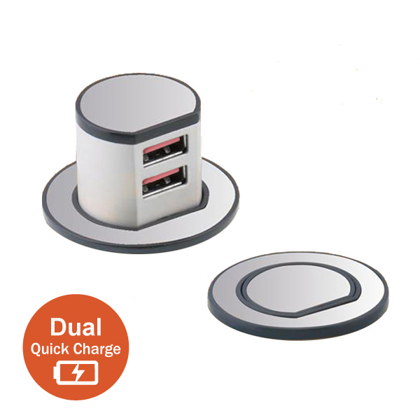 Mini Pop-Up Dual USB Quick Charger – Type – A (Max.20W) – Chrome
