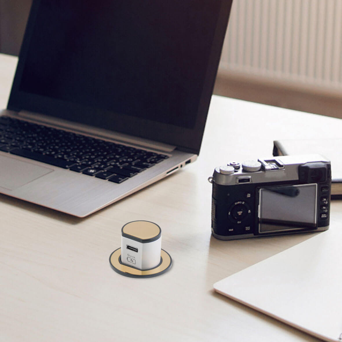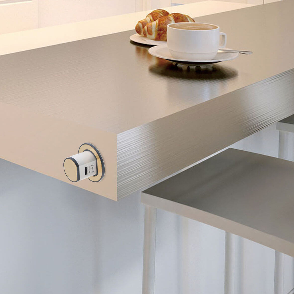 Mini Pop-Up USB Charger 3.1A Type C Quick Charge – Polished Brass