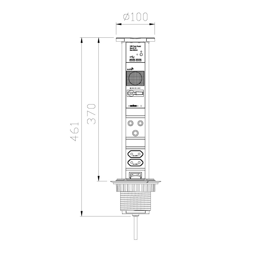 POP-UP SOCKET with SA Socket, Audio Speaker and USB Charger Port – Satin nickel