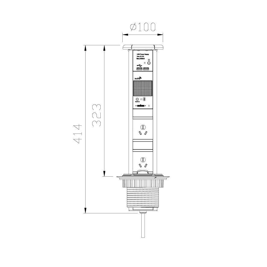 POP-UP SOCKET with SAA Socket, TWS Bluetooth Audio Speaker and USB Charger Port – Black