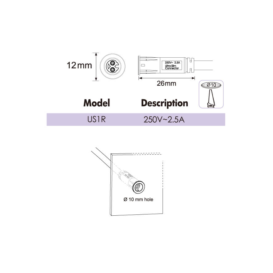 Fits for 10mm diameter cut out hole on wooden board