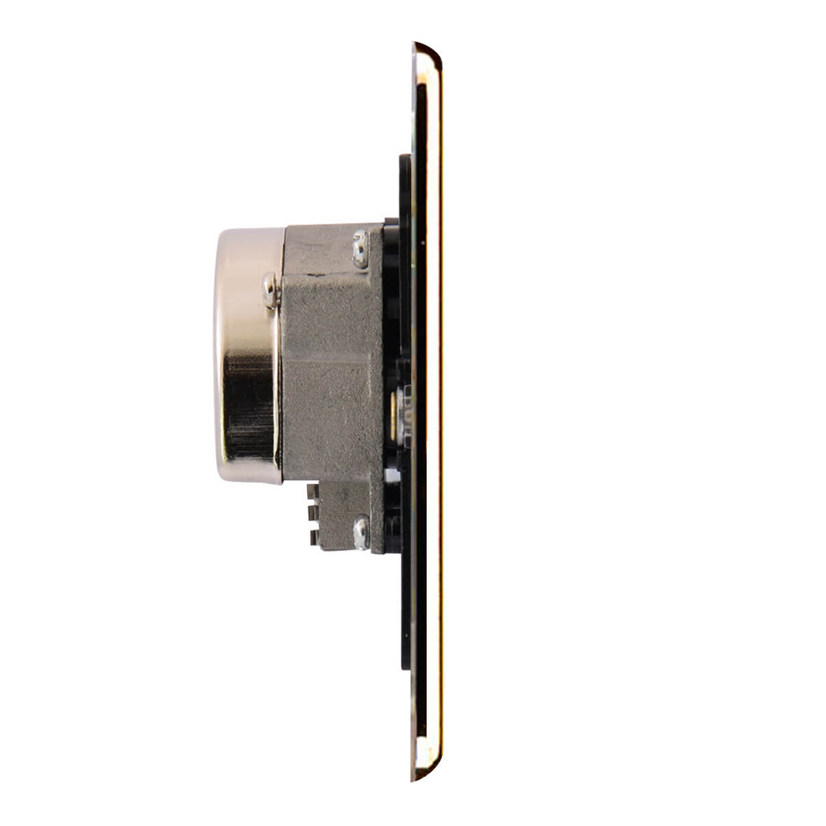 Metal front plate made with premium grade material, easy clip on cover.