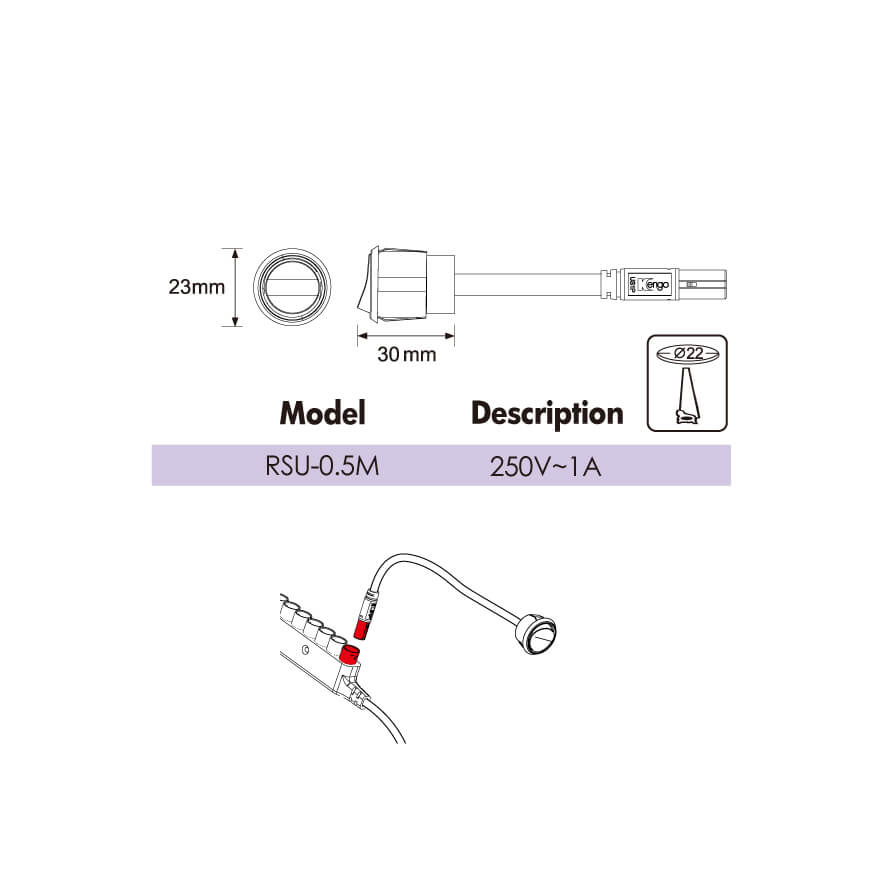Rocker switch with male plug connector