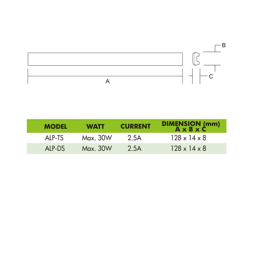 Dimension: 128mm (L) x 14mm (W) x 8mm (H)