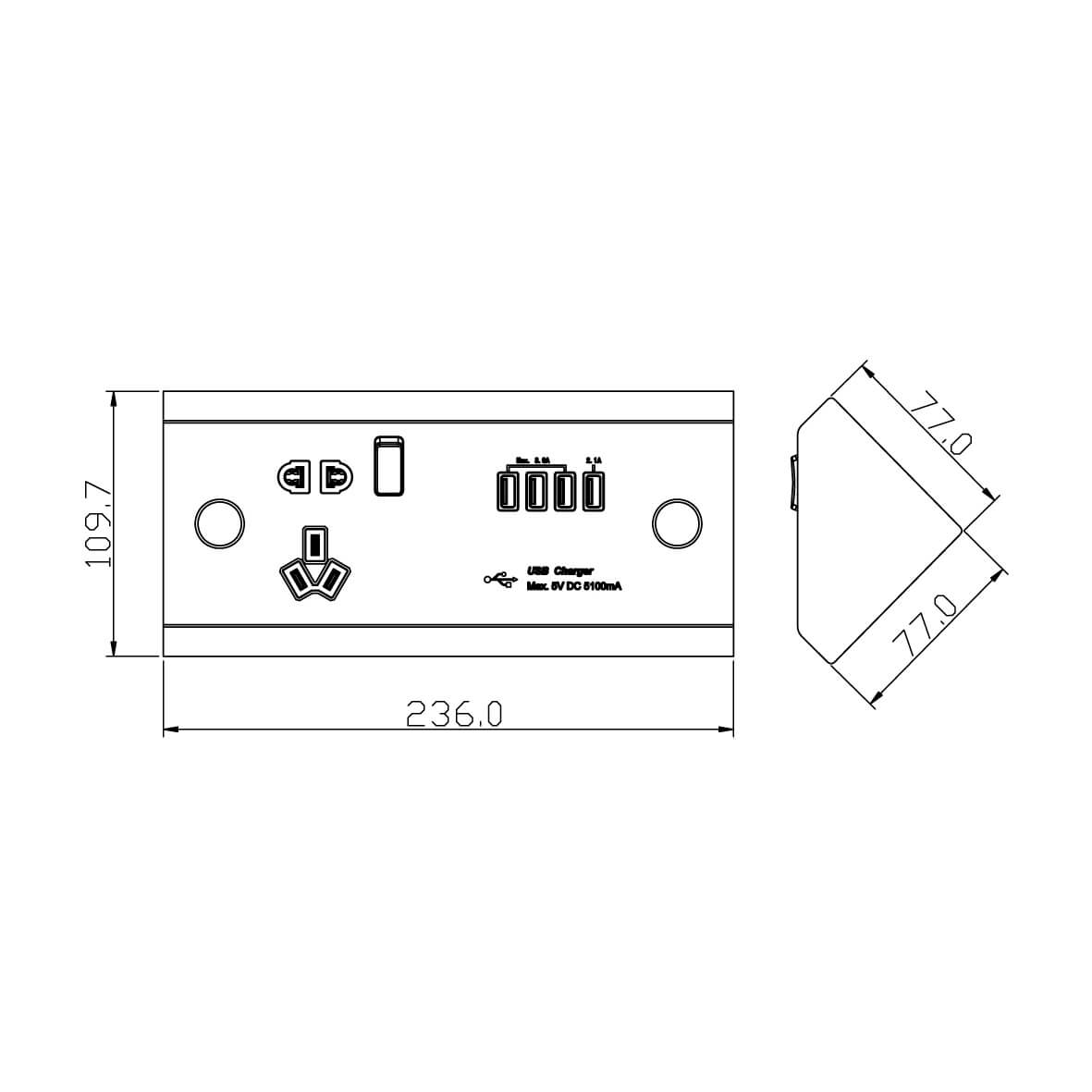 – Quad USB Output: Total Max. DC 5.0V, 5.1A, 25.5W